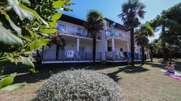 Csendes és zöld, szépen gondozott területen találhatóak a 4-8 apartmanból álló sorházak. Az apartmanok 200 m-re a tengertől helyezkednek el. Összesen 64 apartman található itt, több épületben, az épületek között kisebb parkkal. Néhány méterre élelmiszer bolt, éttermek és kihagyhatatlan kávézók várják a nyaralókat. Újszerű, tágas és teljesen felszerelt apartmanokat gyermekes családok, kirándulók és főleg sportolók nagyon kedvelik. Sokak számára kifejezetten előnyös, hogy az apartmanok nem közvetlenül a parton helyezkednek el.
