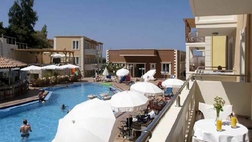 A csendesebb Kalamaki település főútján a családi irányítású, háromszintes főépületből (liftes) és kisebb épülettömbökből álló, 48 szobás épületegyüttes. Közvetlen közelében kis kikötő és kavicsos/köves part található. Homokos partszakasz és a központ egy könnyed sétával (kb. 300-400 m) érhető el. (Nagyobb szórakozási és vízisport-lehetőségek Ag. Marina, Platanias vagy Chania településeken). A helyi busz megállója a hotel előtt található.