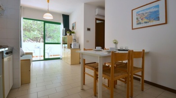 C 6 fős apartman: HÁROM LÉGTERŰ, 4-6 fő részére. Nappali kétszemélyes kihúzható kanapéval, főzősarokkal, szoba franciaággyal, szoba emeletes ággyal, fürdőszoba, fedett erkély, légkondicionálás.