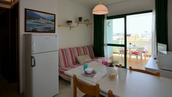B5 fős apartman: KÉT LÉGTERŰ, 3-5 fő részére. Nappali kétszemélyes kihúzható kanapéval, főzősarokkal, szoba franciaággyal és egy egyszemélyes ággyal, fürdőszoba, fedett erkély, légkondicionálás.