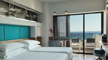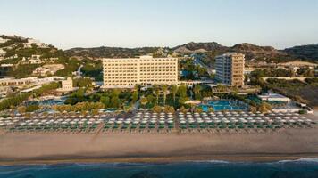 A fővárostól mindössze kb.10-km-re található, közvetlen a tengerparton elhelyezkedő, 250 szobás, nyolcszintes, lifttel rendelkező épületből álló szálloda komplexum. A közkedvelt 4 csillag superior besorolású szálloda az Esperos szállodalánc (Esperides Beach, Esperos Mare) tagja, és az említett szállodák közvetlen közelében helyezkedik el.