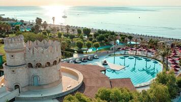 • 24 órás recepció, gondozott kert, társalgó, éttermek, bárok, medence és tengerparti bár, édesvizes felnőtt medencék/gyerekmedence (ingyenes napágy/napernyő), belső, fedett medence, ingyenes WIFI, valamint parkoló szolgálja vendégek kényelmét. Aktív kikapcsolódásra, szórakozásra asztali tenisz, teniszpálya, mini golf, hetente többször felnőtt/gyerek programok, zenés táncestek szolgálnak.