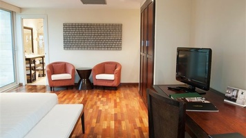 Suite Superior: kb. 40 m²-es elegáns szobák, tágas nappalival, mely oldalról tengerre néző, duplaágyas hálórésszel. A szobák 3., illetve 4. fő részére pótágyazhatóak.