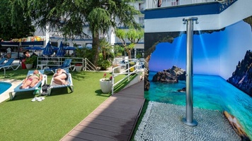 Szolgáltatások: Recepció, hall, 2 lift, csomagszoba, légkondicionált étterem, pool bár és ingyenes WIFI-kapcsolat biztosítja a kényelmes, gondtalan nyaralást. A szépen gondozott kertben úszómedence ingyenes napozóágyakkal és napernyőkkel, napozóterasszal, hidromasszázs medencével hívogat felfrissülésre gyermekeket, felnőtteket egyaránt. Ezen kívül gyermekeknek különböző élményelemekkel felszerelt sekélyvizű medence is elérhető. Biliárd és asztalitenisz helyszíni fizetés ellenében vehető igénybe. Különböző szórakoztató és sportprogramok gyermekek számára naponta elérhetők a miniklubban, továbbá hetente több alkalommal show-műsorok keretein belül kapcsolódhatnak ki kicsik és nagyok. Fontos tudnivalók: A szállás csak repülővel együtt foglalható.