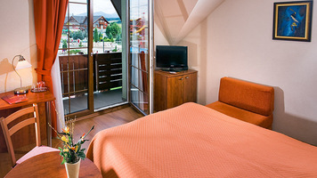 2 fős standard szobák: kényelmesen berendezett, 2 ágyas szobák, saját fürdőszobával, hajszárítóval és wc-vel. A szobákhoz wifi csatlakozás, műholdas lcd-tv, széf, telefon, minibár tartozik. A standard szobák a parkolóra néznek, néhányuk a tetőtérben található. Néhány szoba pótágyazható további egy 12 év alatti gyerek részére (kanapéágy).