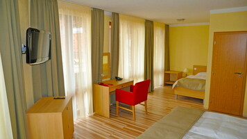 2 fős standard szobák kilátással a viziparkra, erkéllyel: kényelmesen berendezett, 2 ágyas szobák, saját fürdőszobával, hajszárítóval és wc-vel. A szobákhoz wifi csatlakozás, műholdas lcd-tv, széf, telefon, minibár tartozik. Néhány szoba pótágyazható további egy 12 év alatti gyerek részére (kanapéágy).