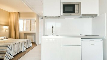2 ágyas stúdiókban, melyek felszereltsége megegyezik a standard szobáéval, de egy kisebb konyhasarok található bennük.