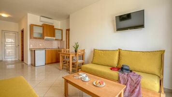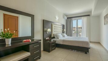 1 hálószobás apartmanjában, mely két légtérből áll: 1 hálószoba és 1 nappali/konyha rész. Felszereltségükhöz sík képernyős sat TV, széf, balkon/terasz, telefon, légkondicionáló, hajszárító, minihűtő tartozik. Nappalijában kanapé/szófa jellegű ágyak találhatóak, mely felnőtt vendégek számára nem nyújtja egy normál ágy kényelmét.