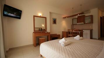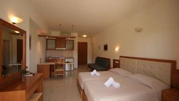 2 ágyas pótágyazható stúdióiban, melyek felszereltségéhez sík képernyős sat TV, széf, balkon/terasz, telefon, légkondicionáló, hajszárító, konyhasarok, minihűtő tartozik. A pótágya szófa vagy kanapé.
