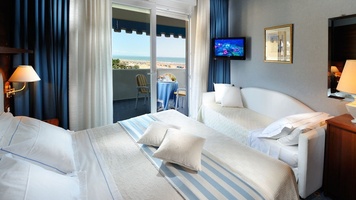 Comfort: Kb. 18 m2-es, 2 fős szoba, fürdőszobával és oldalról tengerre néző erkéllyel. Pótágyazható 3. ággyal vagy gyerekággyal. Nagyobb családok esetén összenyitható szoba kérhető: egy franciaágyas szoba és egy szoba két egyszemélyes, de összetolható ággyal. Mindkét szoba pótágyazható. Az összenyitható szobában min. 4 fő teljes árat fizet!