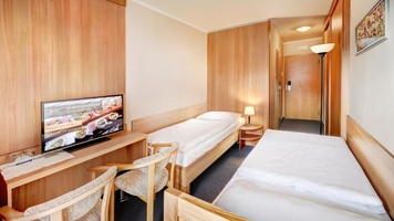 2 fős standard economy TWIN szobák: felújított, kényelmesen berendezett, két külön ágyas szobák saját zuhanyzóval, hajszárítóval és wc-vel. A szobákhoz sat-tv tartozik. A szobák részben erkéllyel rendelkeznek. Nem pótágyazható.