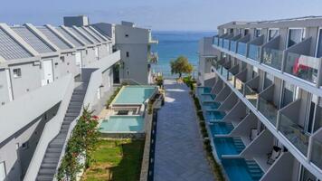 - Recepció, társalgó, lift, éttermek, bár, kisebb méretű medence (ingyenes napágy és napernyő a medence mellett), tengerre néző terasz, ingyenes WIFI, kis játszótér, valamint parkolási lehetőség szolgálja a vendégek kényelmét.