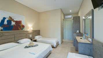 2+1 fős szobában: Kényelmes, standard 2 ágyas kertre néző pótágyazható szobákban, amelyek 3 felnőtt vagy 2 felnőtt és 1 gyermek kényelmes elhelyezésére alkalmasak. A légkondicionált szobákban TV, telefon, mini hűtő, fürdőszoba zuhanyzóval és hajszárítóval, ingyenes wifi, balkon-terasz található.