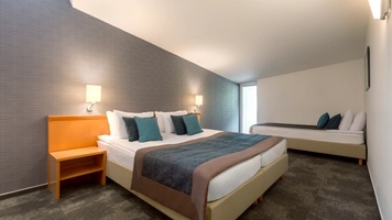 A 118 szobával rendelkező, két éve teljesen felújított, barátságos, minden igényt kielégítő szálloda közvetlenül a pályáknál, néhány lépésre a kerékpár útvonalaktól és a központtól 100 m-re található. A színvonalas szállodát az elhelyezkedésének is kiváló wellness szolgáltatásainak köszönhetően elsősorban aktív pihenés kedvelőinek és családoknak ajánljuk.