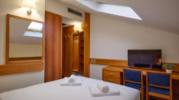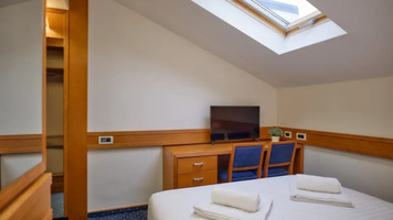 2 fős tetőtéri szobák 19 m2: berendezése megegyezik a többi szobával, de kisebb alaperületűek és kisebb franciággyal rendelkeznek.