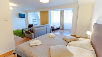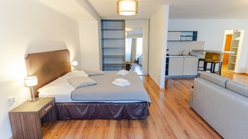2-4 fős 1 hálószobás lakosztályok: A tágas és ízlésesen berendezett lakosztályok megfelelő választást jelentenek hosszú távú tartózkodáshoz vagy igényesebb vendégek számára. Minden lakosztály külön hálószobával és nappalival rendelkezik. A vendégek értékelni fogják a tágas teret, a saját hűtőszekrényt és a zuhanyzós fürdőszobát, valamint az ingyenes wifit. A lakosztályok 2-4 fő elszállásolására alkalmasak.