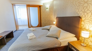 Ostredok suite - 4 fős lakosztály: Stílusosan berendezett lakosztály, kilátással az üdülőhelyre és a Chopok-hegyre. A szállodában csak egy ilyen típusú lakosztály található. 4 normál ággyal rendelkezik. Az általa kínált kényelem mellett értékelni fogja a privát hűtőszekrényt, a tárolóhelyet és a saját fürdőszobát. A lakosztály igényesebb vendégek és hosszabb távú tartózkodásra is alkalmas.
