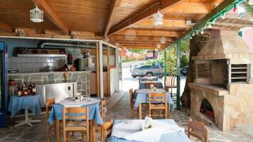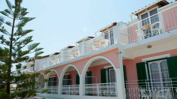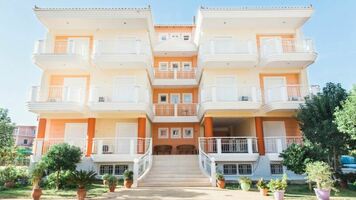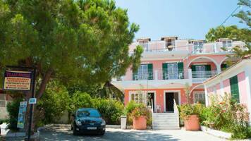 A homokos tengerparttól kb. 350 m-re található, 2 épületből álló ház központi fekvésű, de mégis csendes helyen található, a Costas stúdió közelében. Vásárlási és szórakozási lehetőségek, éttermek, kávézó, bárok a kb. 50-100 m-re található sétálóutcában.
