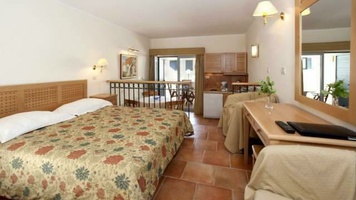 2+2 fős teraszos stúdió apartmanok: 42 m2-es, légkondicionált, egy légtérben 2 különálló ággyal, konyhával, nappalival és kádas fürdőszobával rendelkező, földszinti vagy 1. emeleti, teraszos apartmanok. A 3. és 4. ágy a nappaliban fotelágyak, mely gyermekek számára alkalmasak pótágy gyanánt.