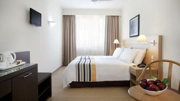 Erkélyes kétágyas szoba: a kényelmesen berendezett, világos, légkondicionált, erkélyes szobák saját fürdőszobával, LCD TV-vel, tea-és kávéfőzővel, mennyezeti ventilátorral,telefonnal, minibárral, wifi elérési lehetőséggel rendelkeznek. A pótágy felnőttek részére is alkalmas normál méretű ágy.