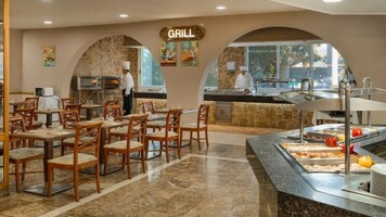 - All inclusive: Büféétterem Svédasztalos rendszerben fogyaszthatja el reggelijét, ebédjét vagy vacsoráját. A menü minden nap tartalmaz helyi és nemzetközileg ismert ételeket is. Medencebár Kültéri, medenceparti bár, ahol napközben frissítőket, egyszerűbb ételeket, nassolnivalókat és különböző italokat fogyaszthat. Délben egy könnyű ebéd elfogyasztására is lehetősége van. Az All Inclusive ellátást választó vendégek korlátlanul fogyaszthatnak itt, viszont fejenként egyszerre csak egy ételt és egy italt kérhetnek. Lounge bar A hotel előcsarnokában került berendezésre ez a hangulatos bár, ahol kényelmesen elfogyaszthatja kedvenc italát. Az All Inclusive ellátást választó vendégek korlátlanul fogyaszthatnak itt is, viszont amennyiben 23:00 óra után rendel és/vagy olyan italt, ami nem szerepel az All Inclusive listán, felárat számolnak fel.