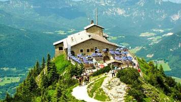 Reggeli után a berchtesgadeni Sasfészek megtekintése. Berchtesgadeni programunk során az 1835 méter magas Kehlstein hegyre érkezünk felvonóval. A Sasfészek (Hitler egykori búvóhelyének) megtekintése mellett jó idő esetén a gyönyörű panorámában lehet részünk. Amennyiben a nem megfelelő időjárás miatt a Sasfészek zárva tart, látogatás a Hallein-i vagy a Berchtesgaden-i Sóbányában. A Sasfészek látogatása helyi autóbusszal valósul meg, tőlünk független, hogy mikor döntenek ennek leállításáról.