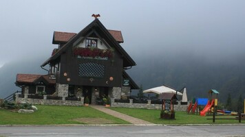 Mikor végre felértünk a hotelhez örömmel tapasztaltuk, hogy a szállás mellett egy étterem kertjében (mindenképpen térjenek be ide, ha erre járnak, mert egy mesevilág) van egy kicsi hófánk pálya, ami hó nélkül is használható. Természetesen kipróbáltuk. A képek magukért beszélnek.