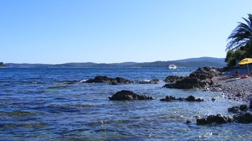 Végül úgy döntöttünk, hogy lemegyünk Stonig és nem kompozunk Ploče-ból (mivel 3-an ültünk egy autóban ez olcsóbbnak is bizonyult) ill. mint utólag egy másik utastól megtudtunk (vele a vasárnapi eligazításon találkoztunk) a kompnál 4 órát kellett várniuk (ez nyilván a főszezon miatti csúcsforgalomnak tudható be ill. 25 férőhelyes volt a komp, amire sok autó lakóautóval ill. motorcsónakot húzva dupla helyet foglalt ill. tolatva kellett beállniuk - ez is sok időt elvett), míg felfértek egy kompra.