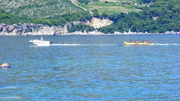 A nagy strandon vannak vízi sport lehetőségek pl. ún. motorcsónak vontatta banán és fánk. Mi az utóbbit próbáltuk ki, jó kis adrenalin emelő élmény volt! :-)