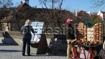 Óvárosba vezetett tovább, ahol rögtön trombitaszó fogadott bennünket, mert óránként ezzel üdvözlik az újonnan érkezett látogatókat. Ugyan még 3 héttel voltunk húsvét előtt, de már nagy húsvéti kirakodóvásár volt az Óváros főterén.