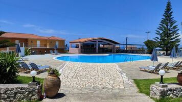 A Hotel Lorenzohoz tartozó apartmanház, Kefalonia kedvelt strandján.
