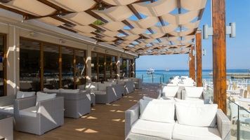 Strand: 50-70 m-re, „kék zászló" kavicsos, betonos és sziklás, napágyak és napernyők bérelhetők