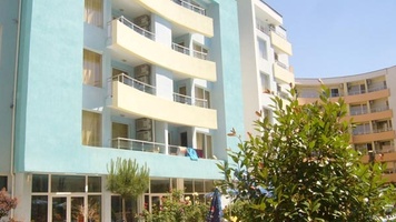 A modern, újépítésű apartmanház Napospart központjában található, csupán 200 m-re a tengerparttól és pár lépésnyire az éttermektől, szórakozóhelyektől. A több szárnyból álló apartmanház udvarán medence, napozóágyak, napernyők és kis játszótér található, amelyet a vendégek térítésmentesen használhatnak.