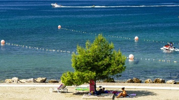 Strand: 300-800 m-re, „kék zászló" jelzésű, homokos, kavicsos és betonos, napágyak és napernyők bérelhetők.