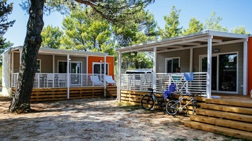 5+1 fős SUPERIOR mobil házak: a légkondicionált, 34,4 nm2 alapterületű mobil házakban 2 hálószoba (egyik franciaággyal (kb. 145x200 cm), a másik hálóban két különálló ággyal (kb. 75x195 cm) és egy falról lenyítható ággyal), 2 zuhanyzós fürdőszoba WC-vel, kombinált konyha és nappali található. A nappaliban kihúzható kanapé található, mely leginkább 2 kisebb gyermek részére ággyá alakítható (kb. 100x190 cm). A felszerelt konyhában hűtő, gáztűzhely, kávéfőző és mikrosütő található. A mobilházak kb. 25 nm2-es, kerti bútoros terasszal rendelkeznek és műholdas TV-vel felszereltek. Maximum 5 felnőtt és 2 gyermek (12 év alatti) számára foglalható.